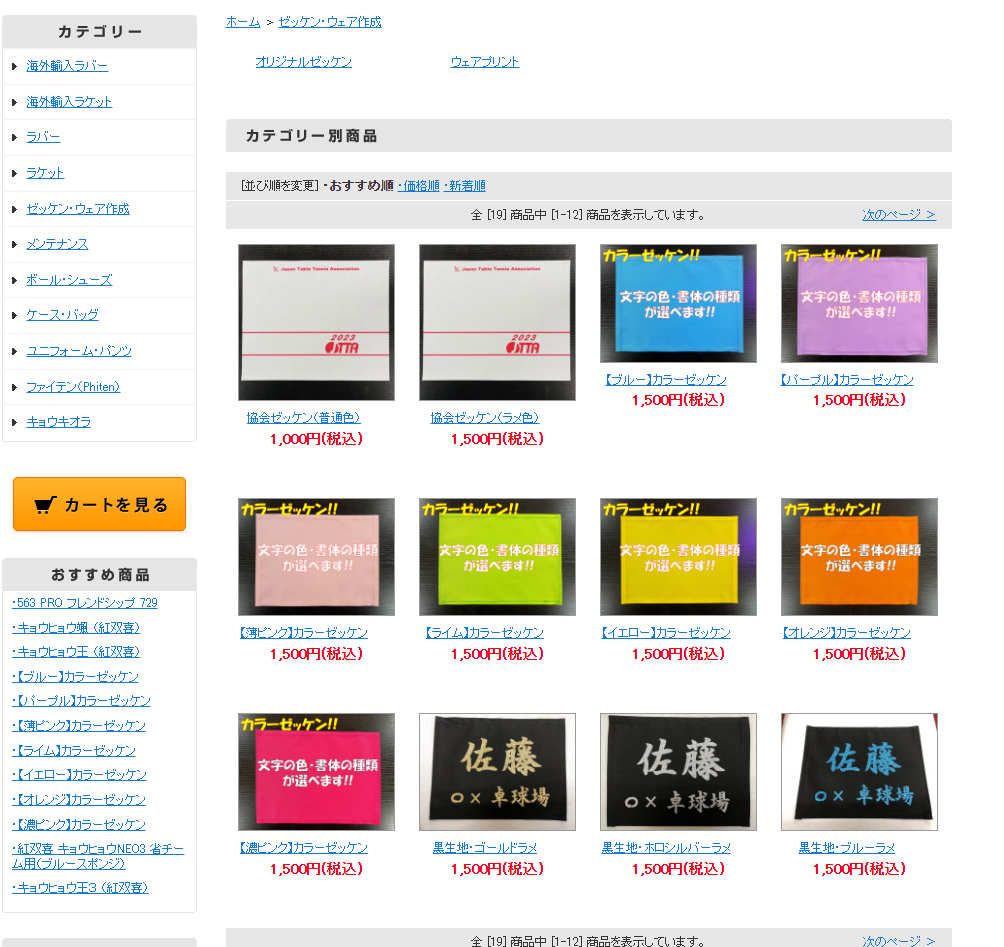 ゼッケンの注文はひら卓屋のこちらのページからご注文頂けます。 ひら卓屋 ゼッケン